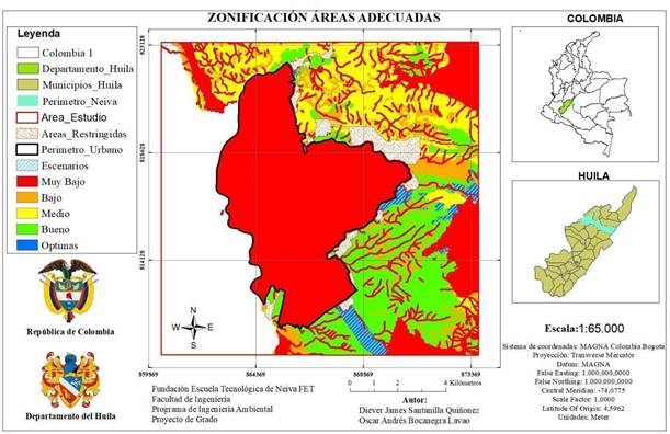 Abstract: The aim of this study is to generate adequate spaces for demographic growth with a socio-environmental criteria giving a projection for the territorial ordering of the municipality through Geographic Information Systems, including criteria parameters provided by the Huila government planning office, and using the diffuse overlap for the identification of suitable areas for demographic expansion. The results evidence that the urban and suburban area of the municipality has a 3% for optimal areas and 22% for good areas, determining that expansion can be carried out towards the south and east of the environmentally responsible city.