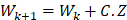 (9)donde: k+1 y k representa la realización de una iteración en el algoritmo, C se define como el tamaño del paso y Z es un vector de la misma longitud que W de valores aleatorios con una distribución gaussiana de media 0 y varianza 1.