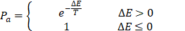 es la diferencia entre el error antes y después de la perturbación de los parámetros a optimizar. T [adimensional] es la temperatura del algoritmo que va modificándose a través de las iteraciones, controlando que la probabilidad de aceptar una peor solución disminuya con las iteraciones.