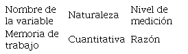 continuación, en la tabla 1 se presentan las variables sociodemográficas que se tuvieron en cuenta para el análisis de los resultados y en la tabla 2 se muestran las variables de análisis de la función memoria de trabajo.