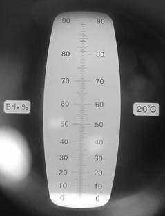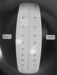 En la Figura 11 se observa el instrumento utilizado para la medición sin muestra y en la Figura 12 se observa el resultado obtenido. Se midió en una escala de 0 – 90% permitiendo conocer la cantidad de sacarosa que posee la cáscara de la piña.