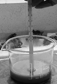 En las Figuras 16, 17 y 18 se observa parte del procedimiento para realizar la medición, en el cual se puso a hervir la muestra en un vaso de precipitado, sobre una estufa con placa de calentamiento, llevando el control de la temperatura por medio de un termómetro.