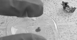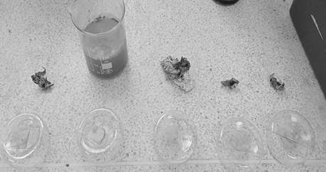 En las Figuras 5, 6 y 7 se puede observar el proceso de extracción del sedimento utilizado para el muestreo. La extracción se realizó por medio de una micropipeta, se añadió una pera y se extrajo el sedimento de las muestras; almacenando el contenido en vasos de precipitado de vidrio.