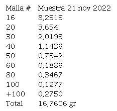 En la tabla 13 se registraron los resultados del proceso de tamizaje de 20gr de cáscara triturada seca exprimida.