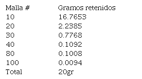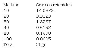 En la tabla 9 se registraron los resultados del proceso de tamizaje de la cáscara triturada, exprimida, seca a la intemperie y finalmente molida.