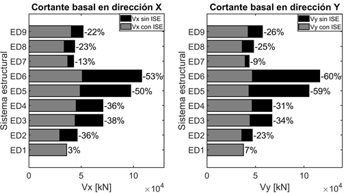 hay un incremento de 36% para ambos sistemas en el cortante de base (