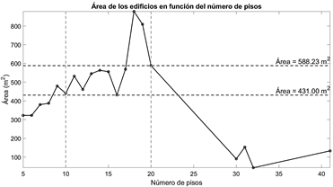 Desde la base de datos del DANE [21], se evidenció que los edificios existentes en el AMB predominan entre los 5 y 20 pisos (Figura 1 (a)). De los cuales según oficinas de planeación municipal de Bucaramanga [22] se identificó en la revisión de 10 sistemas estructurales construidos en la última década, que el área más común de sistemas constructivos con muro estructural oscila entre
