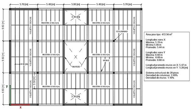 , respectivamente. Además, después de asignar los diafragmas, se verificó con los requisitos de la NSR-10 [5] que la configuración de la