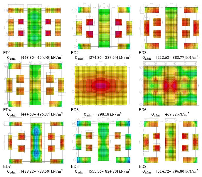 , lo que permitió obtener las diferentes configuraciones de modelos artificiales para el análisis lineal incorporando la flexibilidad del suelo (con ISE) y asumiendo base fija (sin ISE). Los modelos utilizados para el análisis lineal fueron obtenidos en Minitab® [26] y se encuentran detallados en la Tabla 1. Estos modelos fueron nombrados edificios ED1 – ED9 para facilitar su identificación en función el número de pisos y la