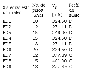 Esta observación se sustenta al comparar la respuesta de los modelos ED3 y ED4, ya que, para un mismo tipo de sistema estructural sobre una similar clasificación de perfil de suelo (perfil D) pero velocidad cortante diferente (