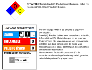 Para el diseño de la ficha técnica se siguieron las recomendaciones dadas por Díaz-Castillo et al., (2019), donde se desarrollaron estrategias por medio de diagramas que permiten identificar los peligros y evaluar los riesgos a los cuales se podrían exponer las personas y el medio ambiente al hacer uso del desinfectante, se incluyeron las posibles presentaciones del producto, sus componentes y especificaciones.