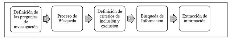 Para efectuar el mapeo sistemático de literatura (SMS) sobre el entrenamiento en programación competitiva, el presente estudio se orienta por el proceso propuesto por [8] (Ver Figura 1).