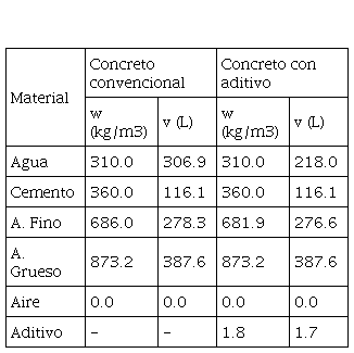 En la tabla 2, se registran los valores de la dosificación tanto para un concreto convencional, y con aditivo, para las características de los materiales adquiridos.