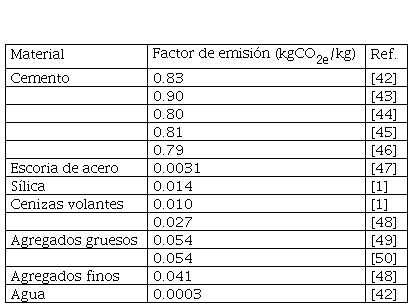Las emisiones de CO2 totalizan la cantidad de este compuesto emitido principalmente durante las etapas de: 1) Elaboración, y 2) Transporte de los precursores tradicionales y sustitutos y 3) Fabricación del hormigón, por lo cual es necesario conocer la cantidad de dióxido emitido en cada una de las etapas [39]. La etapa de producción de las materias primas se refiere a las emisiones de CO2 durante la producción de los principales componentes del hormigón, como cemento, agregados, agua, aditivos y sustitutos. La etapa de transporte involucra la emisión de CO2 durante el transporte de materias primas a la planta de fabricación de hormigón. La emisión de CO2 de la etapa de fabricación del hormigón proviene del consumo de energía in situ en la planta de producción [40].