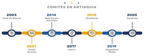 (...) se creó en el año 2003, en el marco del Programa Gestión Tecnológica de la Vicerrectoría de Extensión de la Universidad de Antioquia, como una iniciativa liderada por el Consejo Superior de la institución, quien en dicho momento consideró estratégico buscar alternativas para solidificar las relaciones con los sectores sociales y productivos de la región, bajo el convencimiento de que por esta vía, la universidad no sólo realimentaría sus saberes y prácticas investigativas, sino que también podría proyectarse de manera directa en la sociedad, al vincular sus quehaceres con las demandas del entorno socioeconómico. [16]