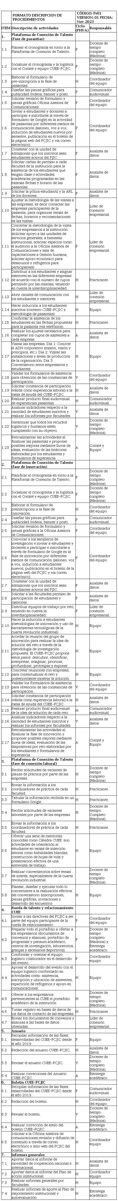 A continuación, se listan los principales procesos que se realizan en el comité institucional CUEE-PCJIC, se realiza una descripción de estos, el propósito con el que se llevan a cabo y las circunstancias que acaecen durante la ejecución de los mismos en el contexto institucional, además se hace una identificación de oportunidades de mejora y fortalezas.