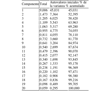 Desarrollado el análisis factorial se obtuvo los resultados de la Tabla1.6.
