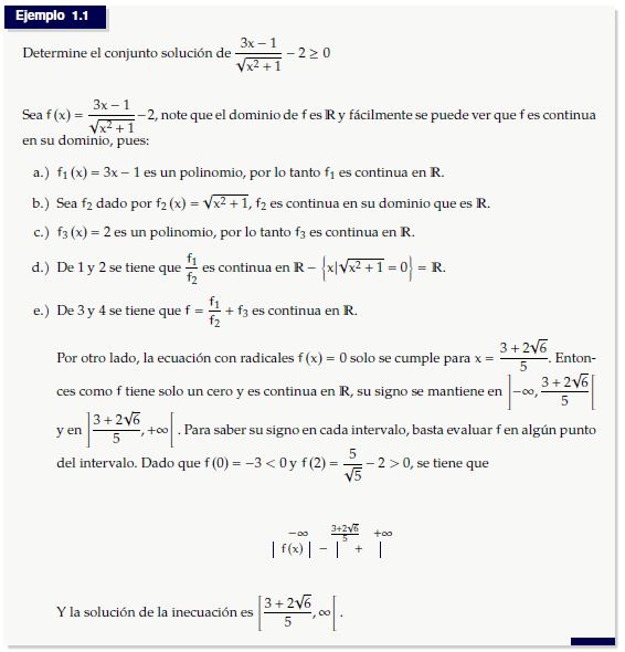 Es usual que esta forma de resolver inecuaciones se mantenga en un curso de Cálculo Diferencial y no se aproveche la continuidad para resolverlas. En los siguiente apartados se brindan algunos resultados que nos permitirán resolver las inecuaciones de una forma un poco distinta.
