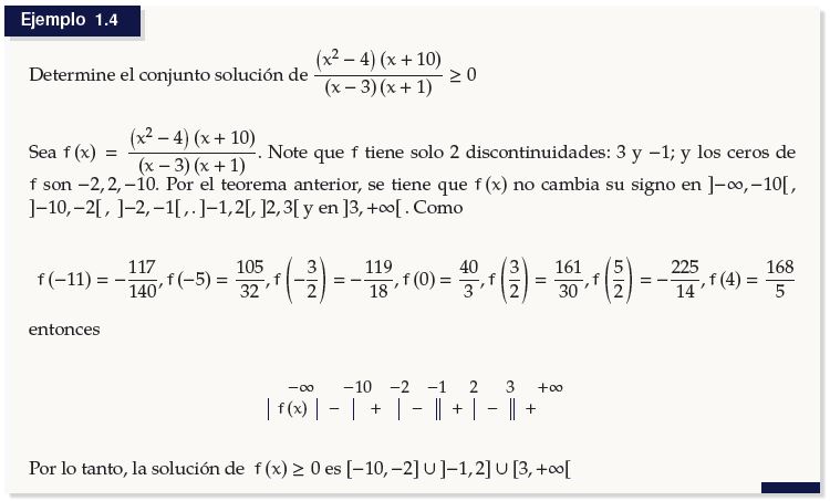 Finalmente, el siguiente teorema nos ayuda a resolver una gran variedad de inecuaciones.