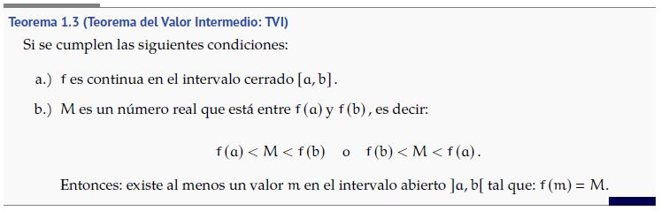 El teorema del Valor Intermedio es la pieza primordial para resolver inecuaciones, como se verá más adelante. Aquí se puede seguir enunciando algunos teoremas importante como el Teorema de Bolzano. Sin embargo, se pretende solo repasar los teoremas y definiciones básicas que permitan abordar la siguiente sección.