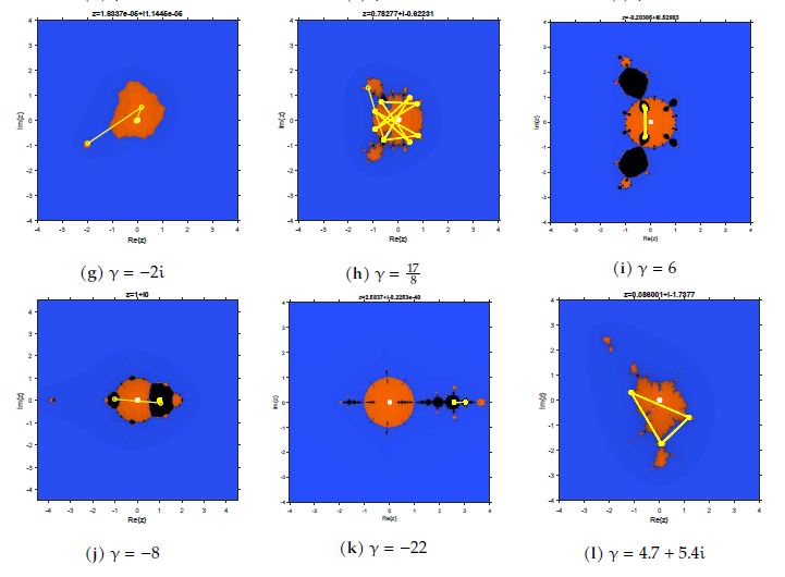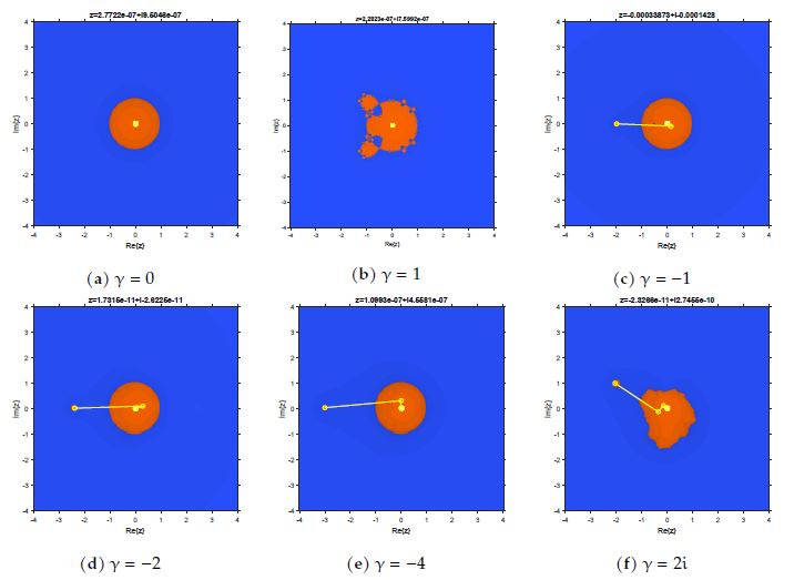 En contraste con la teoría sobre dinámica compleja, la práctica numérica dio resultados favorables sobre los métodos en estudio: algunos valores de γ que se obtuvieron de la zona de convergencia (zona roja) de los planos de parámetros hicieron que el método converja, mientras que algunos valores de de la zona de divergencia (zona negra) hicieron que el método fallara.