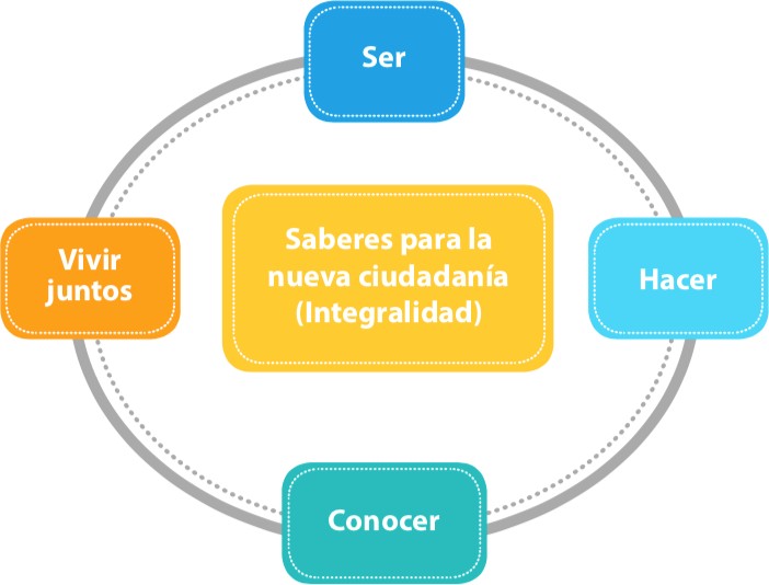 Se propone que a través de cuatro dimensiones, que se asocian con el ser, el conocer o saber, el convivir y el hacer, se puede favorecer el desarrollo de la persona de una manera integral, porque el estudiante a través de las oportunidades para adquirir conocimientos, debe lograr desarrollar su ser, porque hace y convive de manera simultánea (MEP, 2015).
