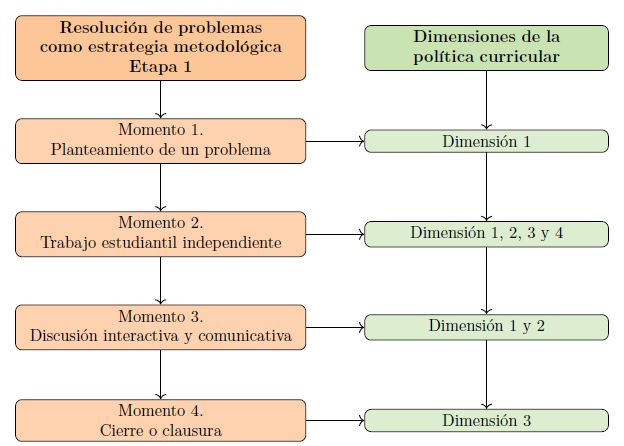 El primero de ellos, “resolución de problemas como estrategia metodológica principal” se puede considerar uno de los ejes más importantes, permea las acciones en el aula y es ejecutado mediante dos etapas como se expuso previamente.