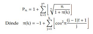 Un ejemplo de funciones conocidas para hallar al enésimo número primo es la fórmula de Willans (1964) que se aprecia en la ecuación 1.