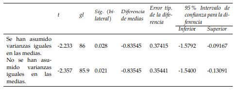 Los registros de las notas finales de los estudiantes en los GE y los GC sirvieron de base para implementar en el software SPSS una prueba de hipótesis paramétrica t de Student en muestras independientes comparando las medias (Hurtado y Hurtado, 2015). Si la diferencia entre las medias en los GE