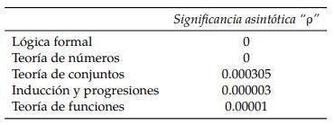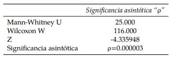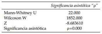 Las Tablas 4, 5, 6, 7 y 8 mostradas a continuación, resumen los resultados arrojados por el software SPSS asumiendo un nivel de confianza de un 95%. En ellas, interesa observar la significancia asintótica “p" obtenida. El resumen de estos resultados se comparte en la Tabla 3.