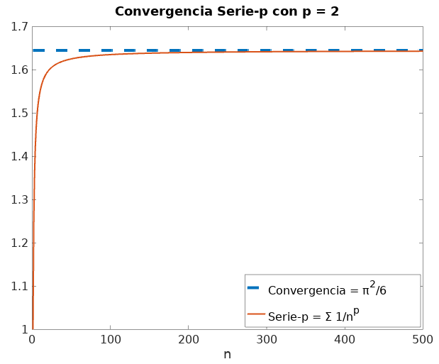 Se conocen valores de convergencia para = 2, 4, 6 entre otros. Para valores impares de p los valores de convergencia no son tan conocidos, pero la constante de Apéry, para = 3 es bien conocida [1]. Puede notarse en la Figura 3, que con muy pocos términos, considerando que se trata de una suma infinita, la serie se acerca al valor de convergencia. De hecho con los primeros mil términos el error entre la suma y π2/6 es de 9.9 × 10−4 y con apenas un millón de términos el error es de 1 × 10−6 .