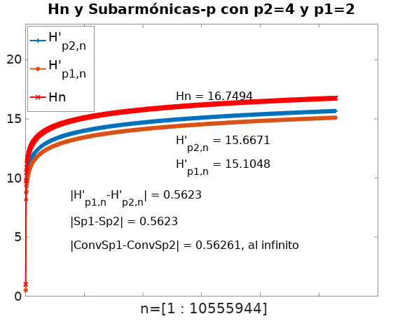 Una forma de verificar esta carrera se muestra en la Figura 5. En la misma figura se muestra la diferencia entre los números subarmónicos, la diferencia entre las series parciales y la diferencia entre los valores de convergencia ya conocidos al infinito.