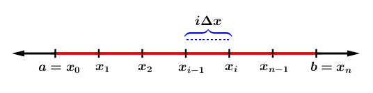 Los deslizadores y representan los extremos del intervalo , con . El deslizador representa el número de subintervalos y de discos.