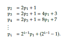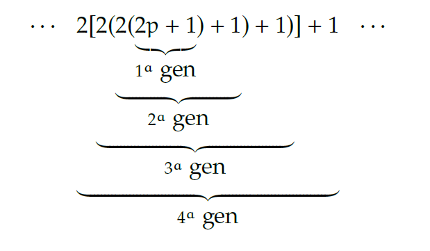 Sea p un número primo inicial, que corresponde a la generación 0, entonces se observa, el siguiente desarrollo:
