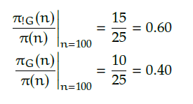 En la Tabla 2 se muestran los valores de cardinalidad π(n) y πG(n) para diferentes valores de n y en la cuarta columna la razón πG(n)/π(n).