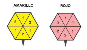 En este ítem el orden en que están situados los triángulos numerados con 1 y 2 en cada trompo es diferente (en el trompo amarillo se van alternando los números, mientras que en el rojo son consecutivos los triángulos con el mismo número). Por ello puede aparecer un sesgo, según Maury (1984). Si el estudiante elige la opción (A) posiblemente piense que la alternabilidad de los números genera mayor probabilidad de obtener un 2, y si elige la opción (B) que haya mayor probabilidad de obtener un 2, si estos están juntos.