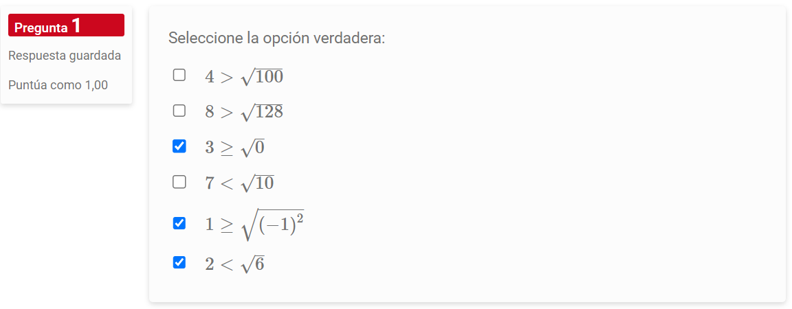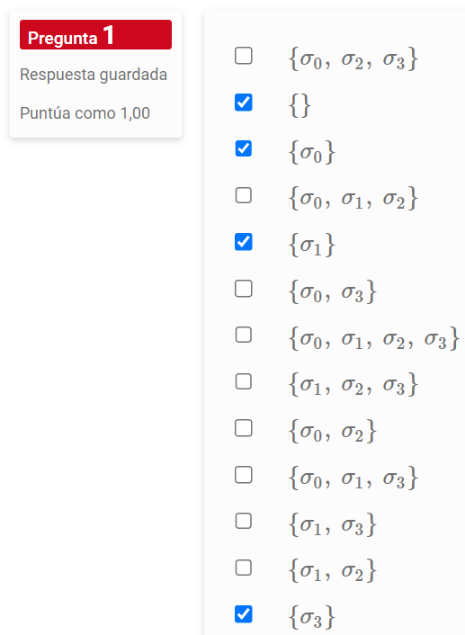 Por otra parte, al querer los primeros seis subconjuntos anteriores como las opciones de respuesta correcta, en el software se procede como sigue: