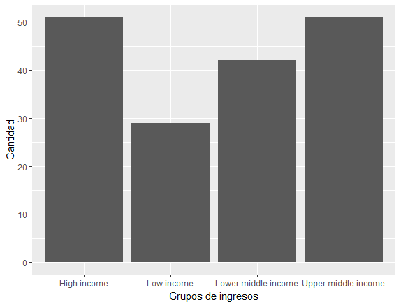 Para construir el gráfico de barras se utiliza la base de datos worldbank y la variable Income_group (ver Figura 11).