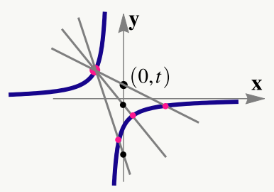 La ecuación tiene a lo sumo dos soluciones. Una de las soluciones es pues el punto satisface la ecuación de la cónica. Entonces el resultado de la división cuadrática por tiene que ser un polinomio en x de grado 1, es decir,