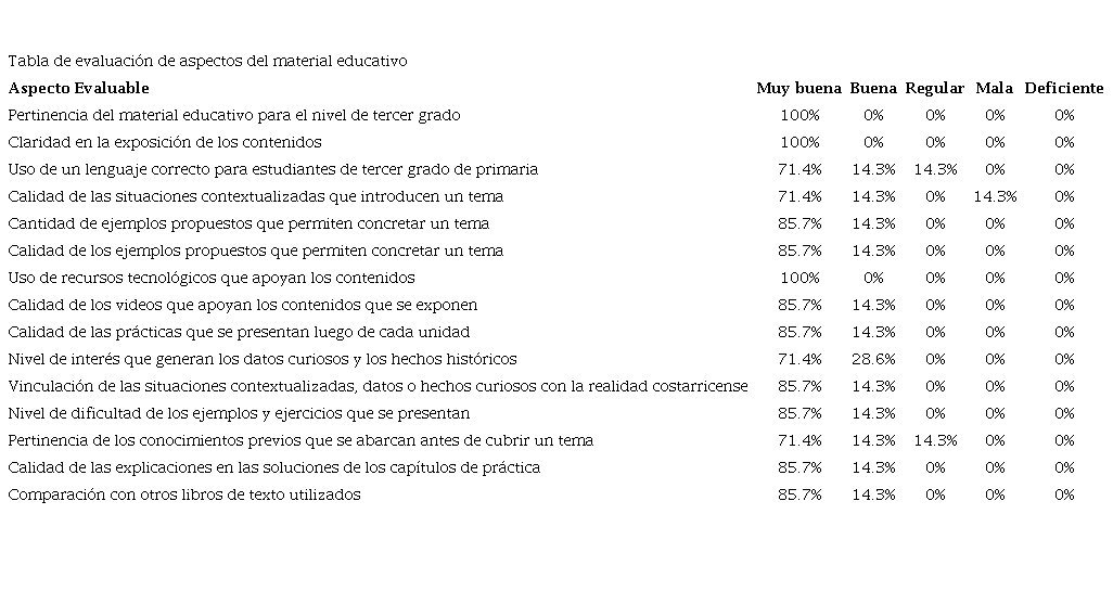 “El libro me parece un material educativo excelente, es acorde al nivel sugerido, es fácil de comprensión para los estudiantes, utiliza un lenguaje correcto para el nivel de tercero, los ejemplos que brindan son claros y contextualizados, utiliza recursos tecnológicos que apoyan y refuerzan los contenidos desarrollados y hacen el aprendizaje más dinámico, divertido y significativo para los estudiantes.”