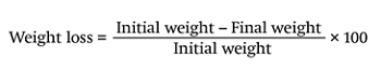 Weight loss (%). Fruits were weighed daily for five days with a balance scale (Ohaus®) and the formula applied was: