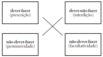 Assim, denomina-se o dever-fazer como prescrição; o dever-não-fazer como interdição; o não-dever-não-fazer como permissividade; e o dever-não-fazer como facultatividade. Com base nos elementos teóricos que se expuseram, parte-se, agora, para a apresentação do corpus deste trabalho.