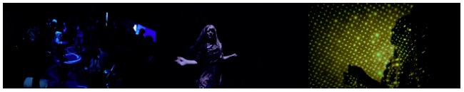 Acredito que, em Doce Amianto, podemos vislumbrar como a estética teatralizada propiciada pela melancolia pode ser dada e discutida por uma linguagem cinematográfica. O filme já parece entregue ao artifício desde sua primeira cena. Amianto é a personagem romântica e sofredora de sua própria história ultrarromântica; ela mesma aparece como sua própria construção artificiosa, como ressaltado na cena da troca de roupas. Entretanto, circundando o mundo de superfícies da protagonista, parece haver outras forças normalizadoras. Essas forças antagônicas nunca se fazem tão visíveis, mas podemos as vislumbrar através de cenas como a que mostra Amianto indo a uma festa. Em um dos poucos momentos em que compartilha um ambiente com outras pessoas, além de sua amiga-fantasma Blanche, Amianto é desprezada por todos que a cercam. Aquele sujeito queer, que até então não havia tido a validade de seu corpo questionada pelos outros personagens, aparece agora sendo rejeitado. Amianto dança sozinha no meio da pista de dança. Se antes haviam outras pessoas ao redor, logo desaparecem, sempre se afastando quando confrontadas com aquele corpo. Subitamente, a luz se apaga e é dado destaque somente a ela. Se não há integração com os demais, Amianto não parece abalar-se: continua dançando em seu mundo artificial. Cena que se repete ao final do longa-metragem, na qual, mais uma vez, Amianto domina o quadro ao dançar sozinha. Mas, se antes a escuridão foi a forma encontrada pela protagonista de continuar a usufruir de seu mundo artificial, agora a vemos iluminada por luzes coloridas enquanto permanece nas sombras. Não parece haver aqui a necessidade de formar laços ou comunidades, pois a solidão e a melancolia já parecem, através de sua teatralização estética, lhe permitir o consolo e força necessários.