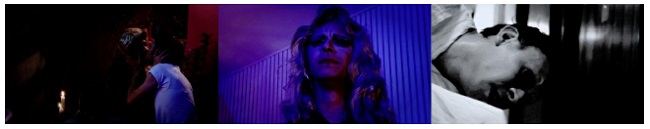 Na primeira sequência, em um encontro em um colorido bar, Amianto vai ao banheiro e, ao voltar, vê o seu possível novo par romântico beijando uma outra versão de si mesma, em uma elipse temporal. Ela foge chorando e, após o corte, aparece deitada, dormindo. É então que o filme é interrompido por uma cena em preto-e-branco de um personagem sem nome sendo levado no que parece ser uma maca em um ambiente hospitalar. A invasão do preto-e-branco interrompe o fluxo de imagens extremamente coloridas que até então predominavam na película. Se o mundo de Amianto é feito por essa plasticidade luminosa, especialmente composta pelas cores básicas vermelho e azul, a cena que irrompe na narrativa é o seu oposto. Aquele corpo fragilizado, sem demonstrar qualquer agência ou potência, levado para algum lugar desconhecido por pessoas também desconhecidas, captura a narrativa por alguns minutos, destacando-se completamente da estética até então desenvolvida pelo longa-metragem. Se, inicialmente, há uma música que dialoga com o universo estetizado do filme − um fado − ela logo cessa, dando lugar aos sons diegéticos do local onde se passa a cena. Aqui não há espaço para as cores ou músicas: há a supressão do artifício em detrimento da dura imagem real e naturalista. Quem é essa pessoa? Seria a verdadeira Amianto, institucionalizada e criando toda a história do filme como uma forma de escapismo? Não há respostas. Em uma espécie de melancolia que se fortalece a si mesma, Amianto se entristece ao ver uma outra versão de si tomando o seu objeto de afeição. A ideia da melancolia como falta chega a um limite quase cômico através dessa elipse temporal que parece reforçar o desejo melancólico como calcado em uma “contradição de um gesto que pretende abraçar o inapreensível” (AGAMBEN, 2007, p. 41). Mesmo que Amianto veja a si mesma naquela relação afetiva, aquilo não lhe é suficiente, o que parece resultar nessa breve dissolução do recurso fílmico através do apagamento do colorido e do ornamental. Não há espaço para a sobreposição do real e do artifício desse corpo desviante construído através da estetização da personagem. Aqui, nessa breve dissolução, até mesmo Amianto assume uma forma masculina.