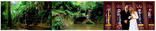 É logo após esse relato e da insistência de Blanche que Amianto vai a uma festa. Como anteriormente mencionado, lá ela já parece empregar conscientemente o artifício como forma de estetizar sua vida e lidar com sua posição marginal. Se ela é desprezada por todos que ali a rodeiam, ela dança sozinha, o único corpo iluminado pela luz azul que invade a cena. É enquanto dança que Amianto vê Herbie e então caminha até ele para iniciar um diálogo. Embora não se trate de um encontro como o anterior no restaurante, já que esse se dá na ordem do acaso, na troca de olhares propiciadas pela pista de dança, existe na cena um clima de flerte e de possibilidades que aproxima esses dois eventos. É a partir da reação de Amianto após essa cena que vemos sua nova forma de lidar com a sua artificialidade melancólica. Após um breve diálogo, Amianto começa uma longa sequência de devaneios, onde começa a imaginar as possibilidades futuras. Mais uma vez, ela se imagina com o homem com quem interage, mas, dessa vez, não como um duplo de si, mas como uma projeção de um possível futuro entre os dois. Aqui há a primeira marca de diferença: se antes havia a falta, agora há o vislumbre do pertencimento, da posse. Em uma sequência de cenas que mostra o possível relacionamento de Amianto e Herbie, começamos pelo passeio dos dois por um cenário bucólico, onde o rapaz se declara para Amianto. Logo depois, vemos os dois nus abraçados em uma pequena queda d’água, possivelmente após o sexo. Permeados pelo verde tropical do cenário e na disposição extremamente posada assumida pelo casal, parece haver aí uma versão queer do Éden, onde a queda se dará logo depois: não com o fruto da árvore do conhecimento, mas com o casamento dos dois.