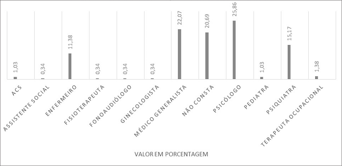 Entre os profissionais da Atenção Primária que encaminharam pacientes para o SPA, estão: os psicólogos (25,8%), os médicos generalistas (22%), os psiquiatras (15,1%) e os enfermeiros (11,3%).