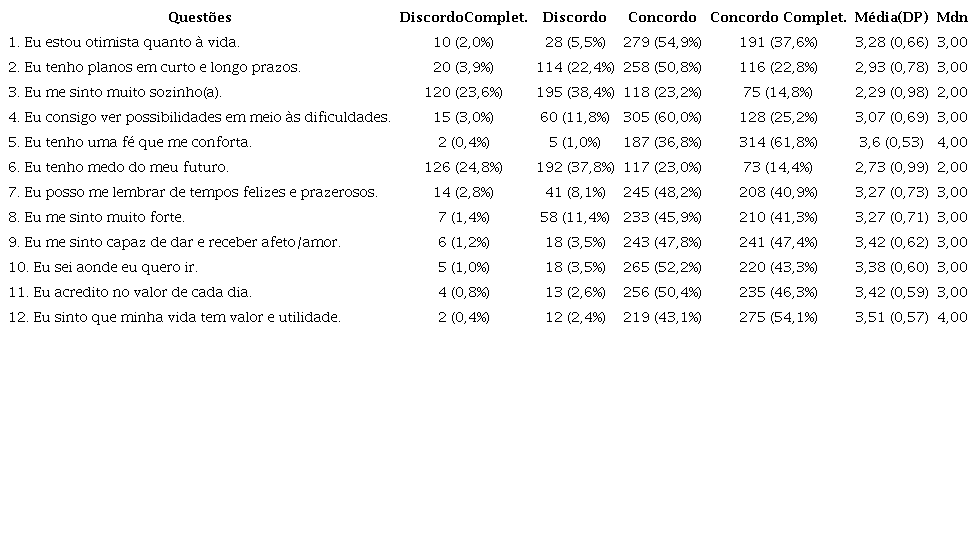 Keywords: aging, elderly, Positive Psychology, hope, quality of life.