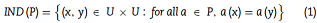 Sea A ∈ A, P ⊆ A la relación indiscernible, IND (P) se define de la siguiente manera:
