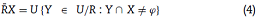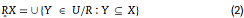 La R − superior aproximación conjunto de X es el conjunto de todos los elementos de U, que posiblemente puede pertenecer al subconjunto de interés X: