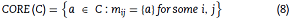 El conjunto de todas las características indispensables en C es denotada por CORE (C). El núcleo es el conjunto de todas las entradas de un solo elemento de la matriz, que es discernible. Tenemos: